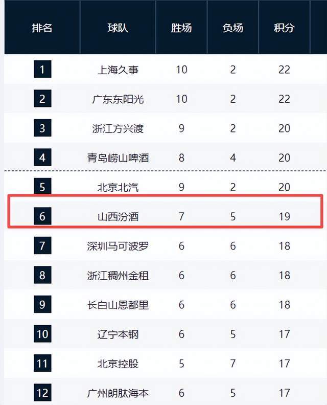 如今,12轮比赛战罢,山西队7胜5负,只能排在第6位,连前4都进不去了。和上赛季的黑马形象,完全不能匹配了。