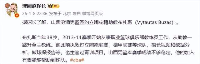 既然外援都做了调整,那么接下来就要考虑教练组了。潘江的实力也就那样了,只能想办法补充其他人了。这不,根据球圈赵探长的报道,山西男篮引入了立陶宛籍助教布扎斯(Vytautas Buzas)。