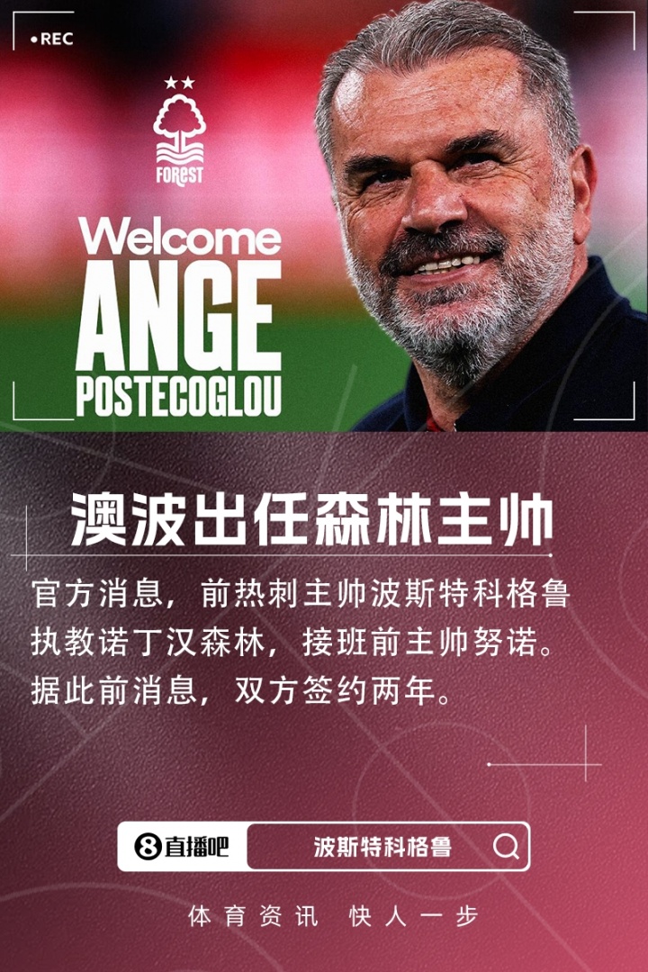 09月09日讯 官方消息,前热刺主帅波斯特科格鲁出任诺丁汉森林主帅,接班前任主帅努诺。